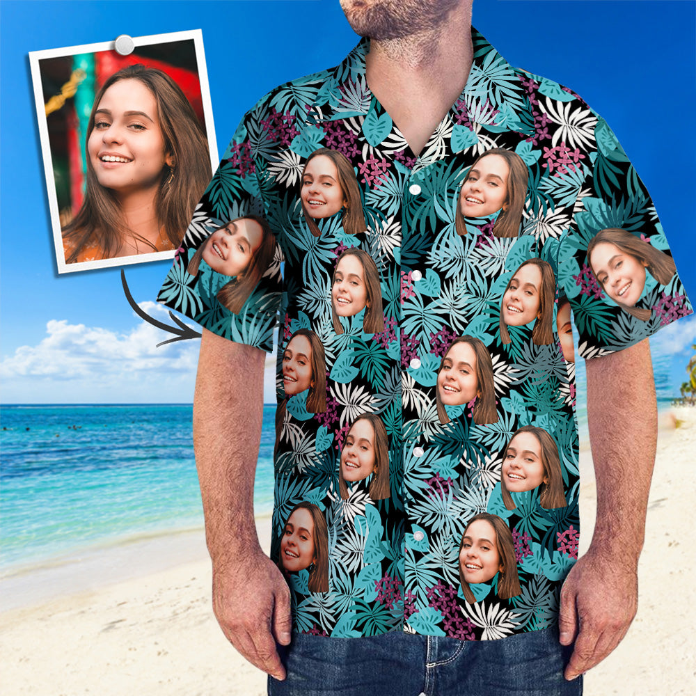 Personnalisé Visage Chemise Hawaïenne Grandes Feuilles Manche Courte La Chemise Personnalisé Cadeau D'Été