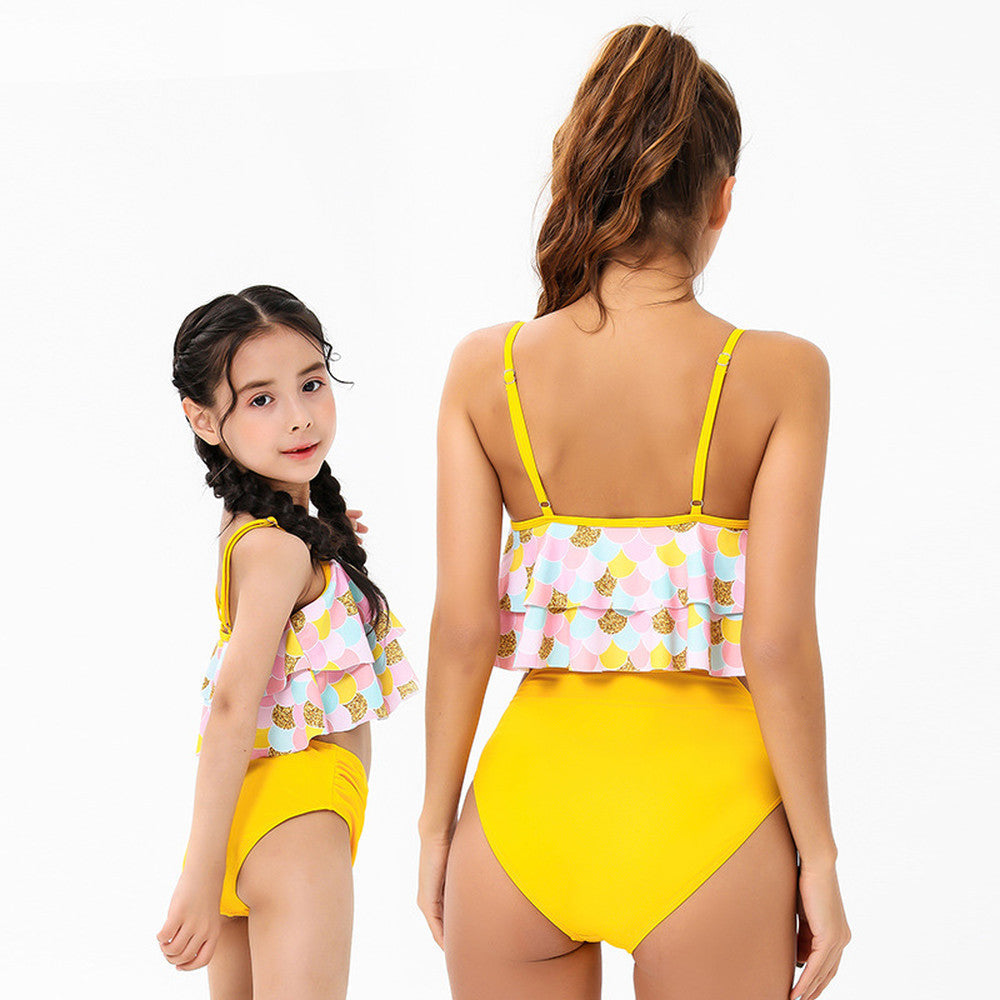 Bikini Taille Haute Écharpe Ébouriffé Impression D'écailles De Poisson Maillot De Bain Parent-Enfant