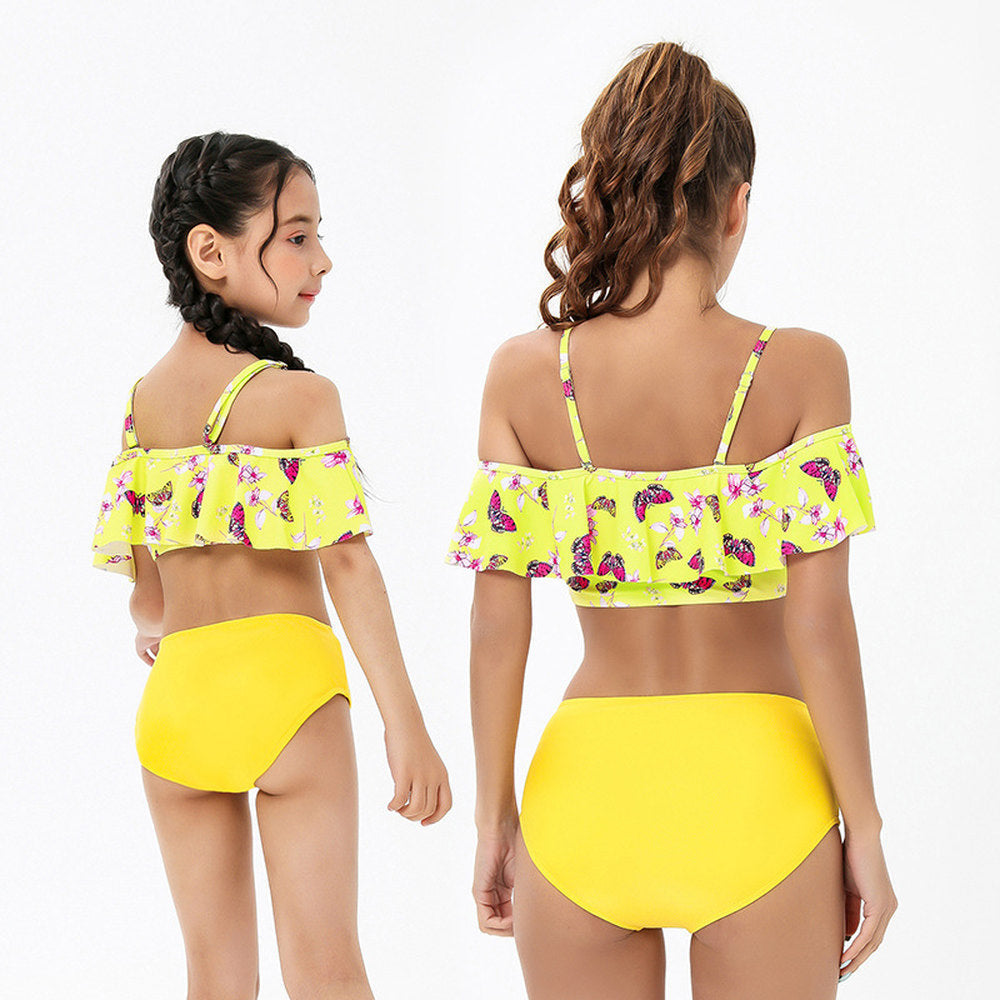 Fronde Papillon Ébouriffé Divisé Parent-Enfant Maillot De Bain