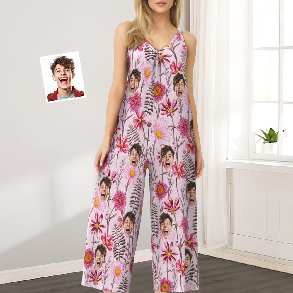 Combinaison Ample Visage Personnalisé Avec Des Barboteuses À Fleurs Roses À Jambe Large