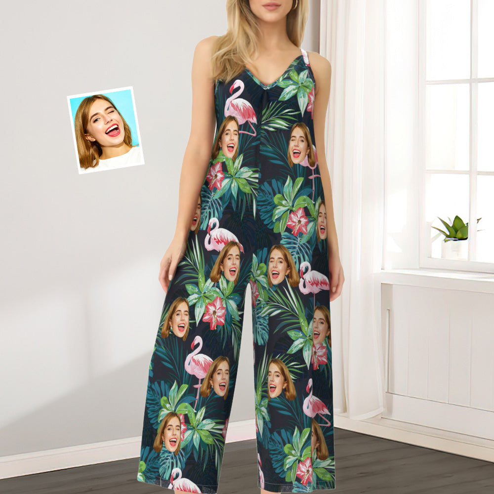 Combinaison Ample Visage Personnalisé Avec Des Barboteuses Flamingo À Jambes Larges
