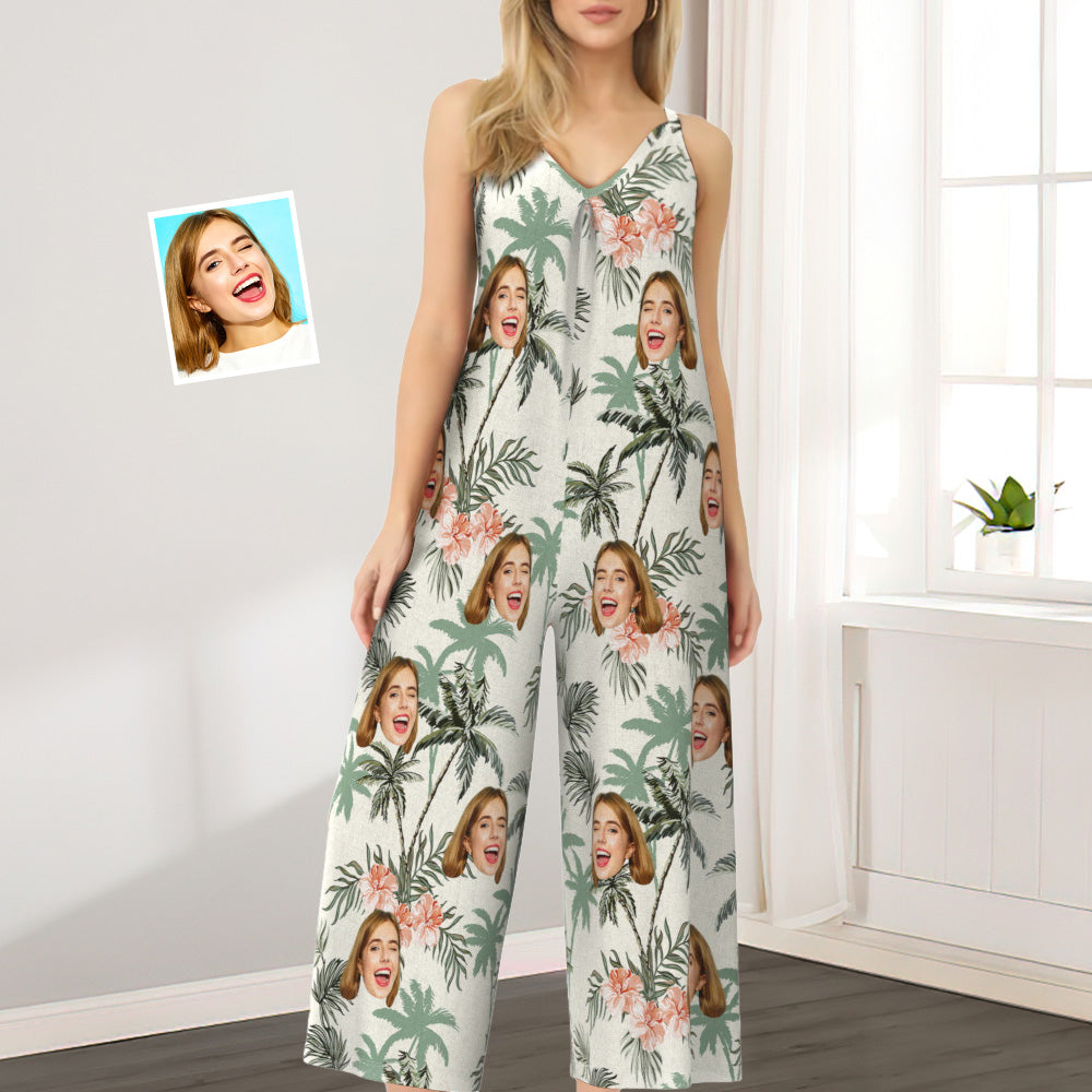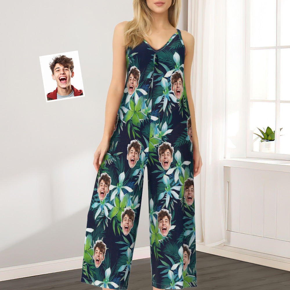 Combinaison Lâche De Visage Personnalisé Avec Des Barboteuses De Style Tropical À Jambe Large