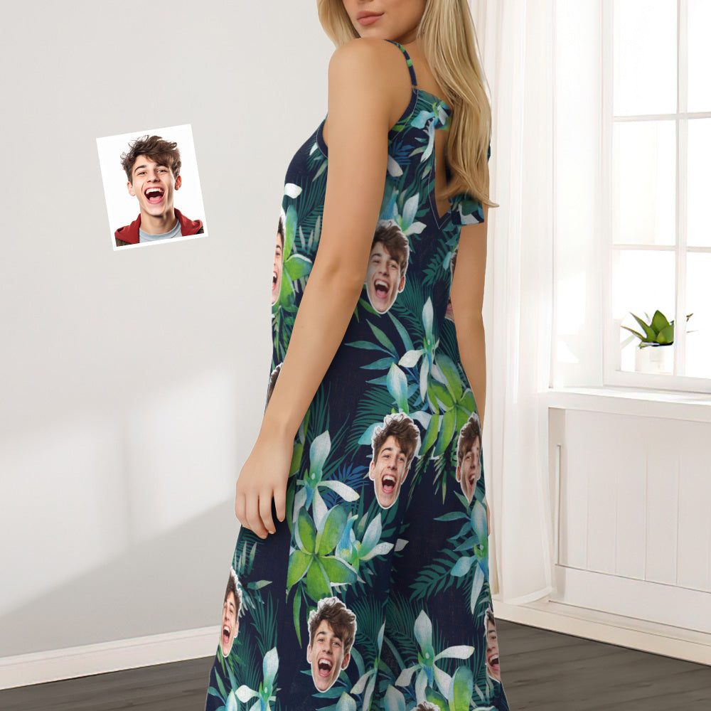 Combinaison Lâche De Visage Personnalisé Avec Des Barboteuses De Plage Hawaïennes Vintage À Jambes Larges