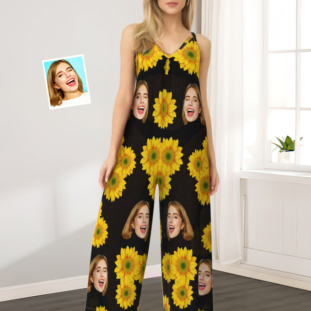 Combinaison Ample Avec Visage Personnalisé, Barboteuse À Jambes Larges Tournesol