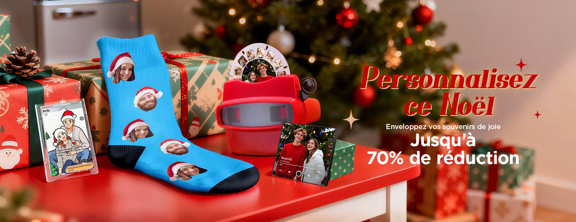 Chaussettes Hautes Personnalisées Pour Le Visage, Chaussettes Chaudes Vintage Personnalisées, Joyeux Noël Pour Les Amoureux, Cadeaux De Noël -