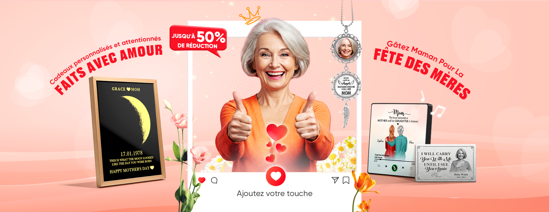 Miroir Lumineux Led Personnalisé « jardin Des Mamans » Avec Fleurs Et Noms, Cadeau Pour La Fête Des Mères -