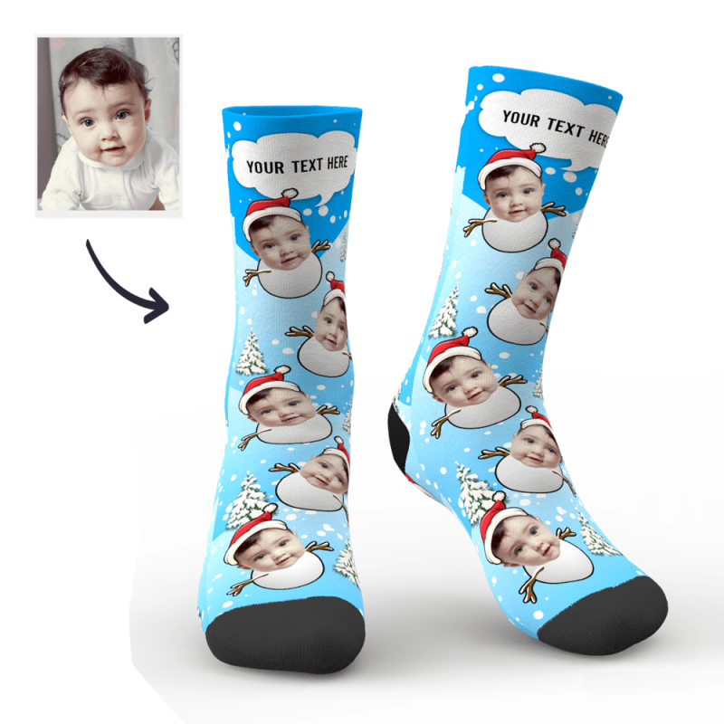 Chaussettes Personnalisées Noël Bonhomme de Neige Mignon avec Texte