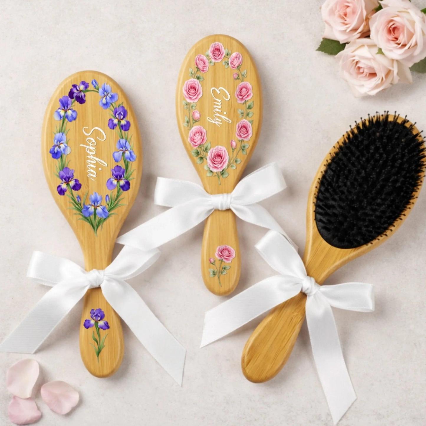 Brosse À Cheveux Personnalisée Avec Fleur Du Mois De Naissance - Cadeaux De Remerciement Personnalisés Pour Une Remise De Diplôme Ou Un Anniversaire Cadeau pour la fête des mères