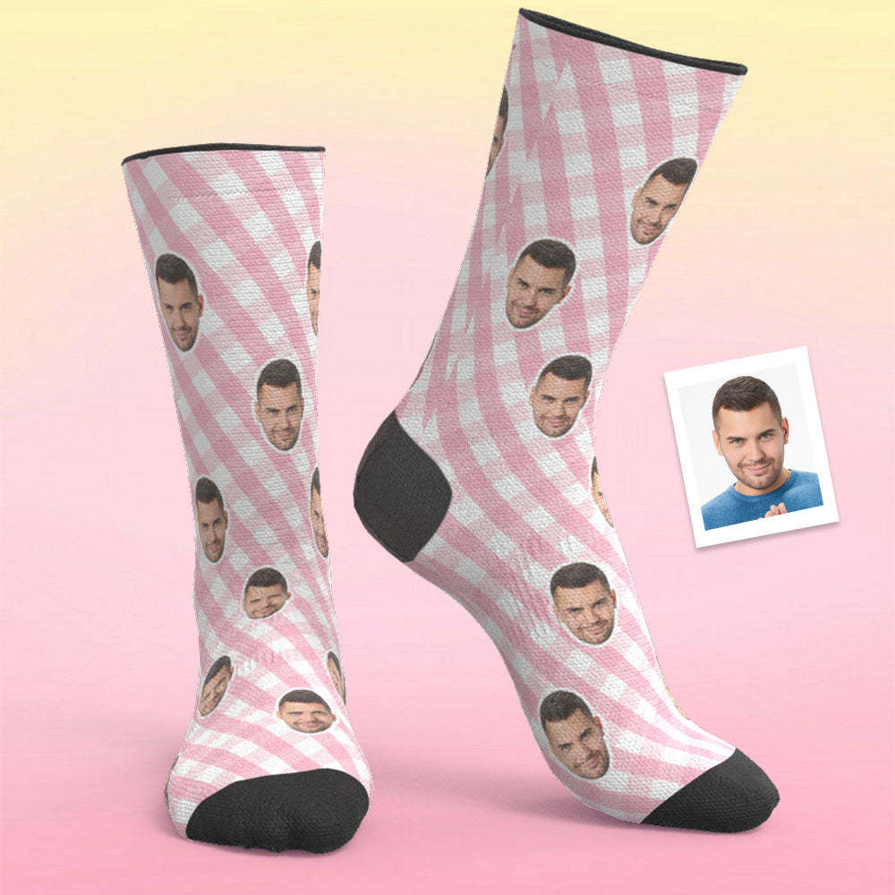 Chaussettes Respirantes Personnalisées Pour Le Visage, Chaussettes À Carreaux Roses -