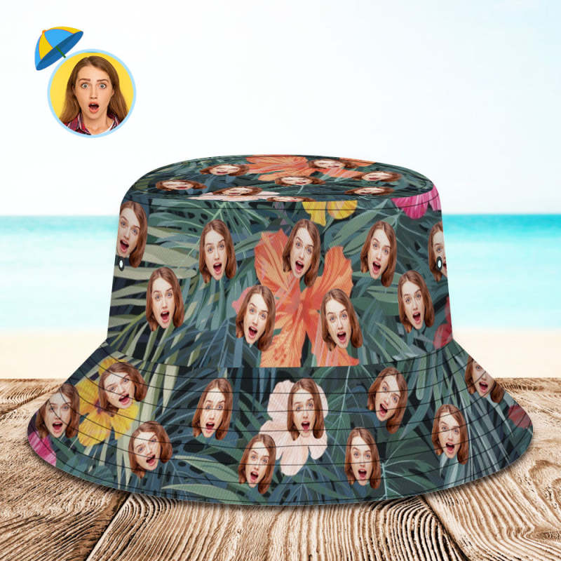Chapeau de seau personnalisé Chapeau Bob Unisexe visage Personnaliser le chapeau d'été extérieur à large bord pour la randonnée Chapeaux de sport de plage -style hawaïen