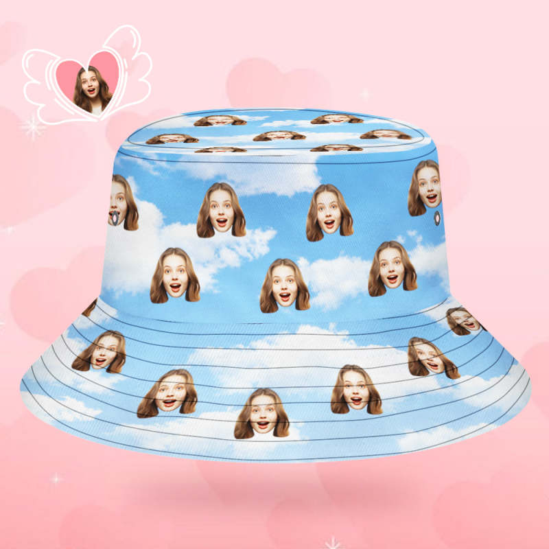 Chapeau De Seau Personnalisé Unisexe Visage Chapeau De Seau Été Imprimé Chapeau De Seau Ciel Bleu Et Nuages