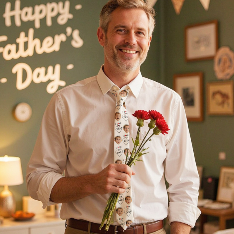 Cravate De Papa Personnalisée Avec Visages, Boîte À Outils, Cadeau Personnalisé Pour Les Pères
