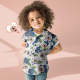 Chemise De Visage De Chien Personnalisée Chemises Hawaïennes Pour Femmes Et Enfants Chemise À Manches Courtes Fleurs Bleues
