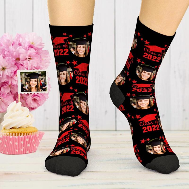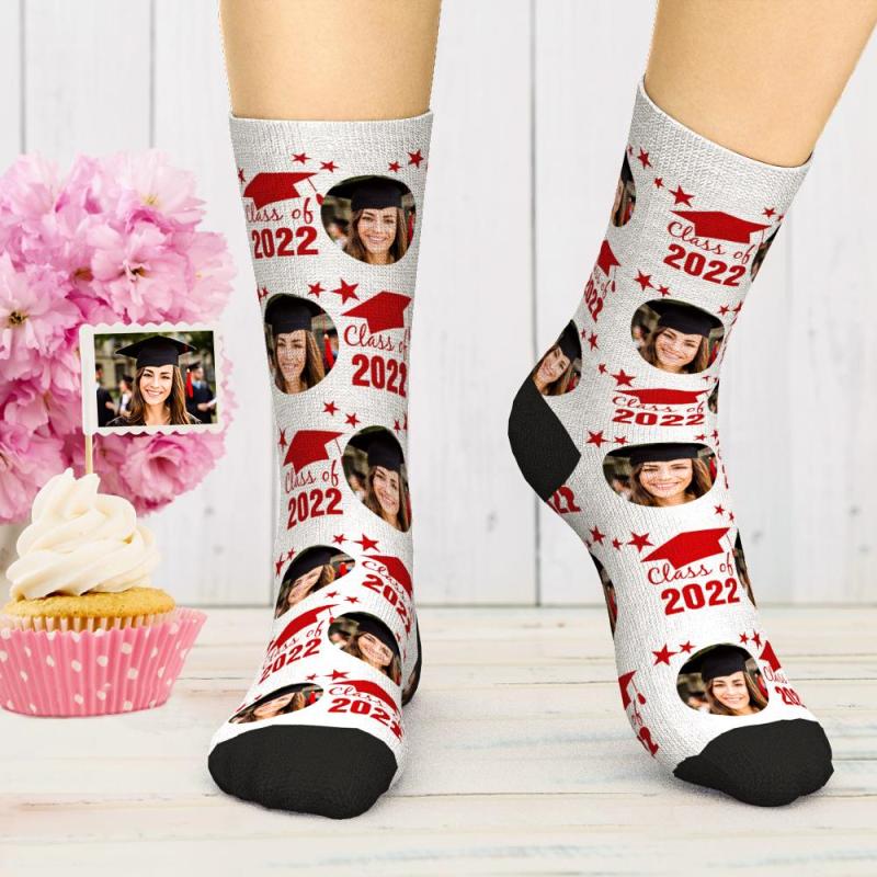Chaussettes Photo Gravées Personnalisées Classe D'obtention Du Diplôme Avec Année Particulière Cadeau Pour Diplômé