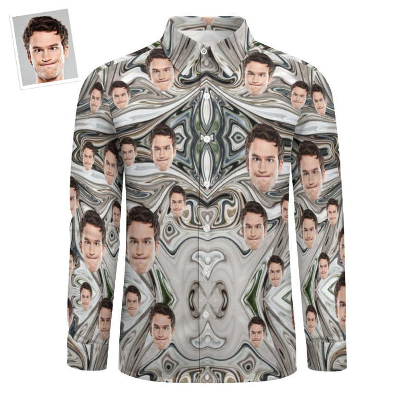 Visage Personnalisé Imprimé Sur Toute La Chemise À Manches Longues Texture Aquarelle D'encre De Marbre