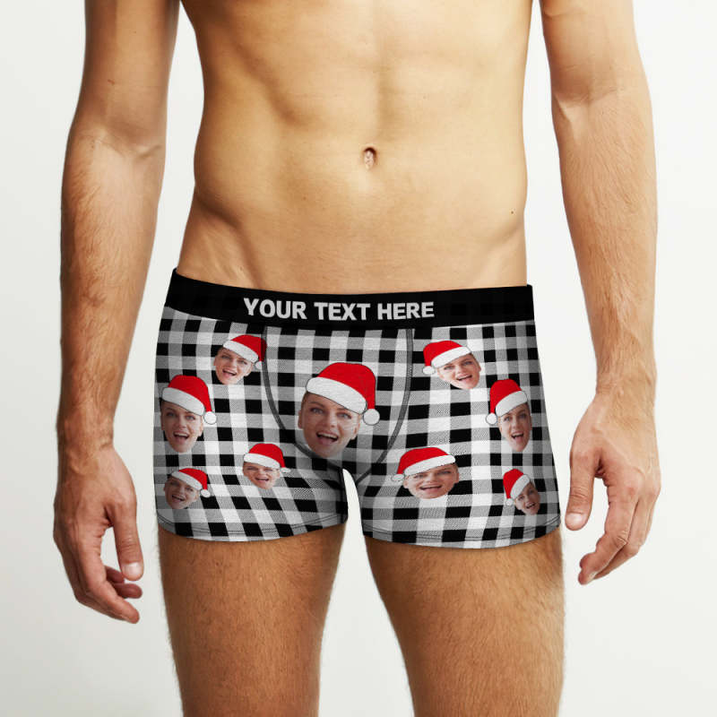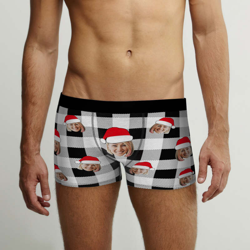 Boxer Personnalisé Pour Visage, Sous-vêtements Personnalisés À Carreaux De Buffle, Cadeaux De Noël Pour Lui