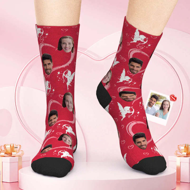 Personnalisé Visage Couple Coeur Chaussettes Cupidon Saint Valentin Cadeau