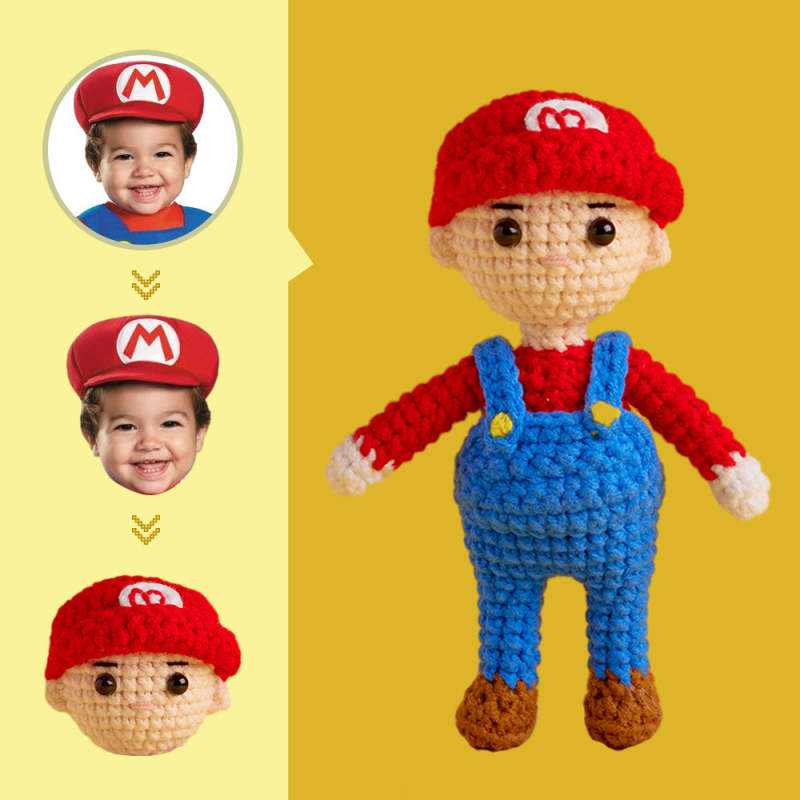 Poupée Au Crochet Visage Personnalisé Cadeaux Personnalisés Mini Poupées Tissées À La Main - Mario