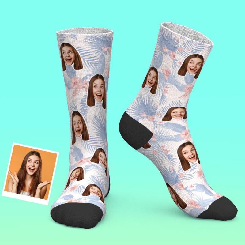 Visage Personnalisé Hawaïen Personnalisé Floral De Couleur Claire Chaussettes