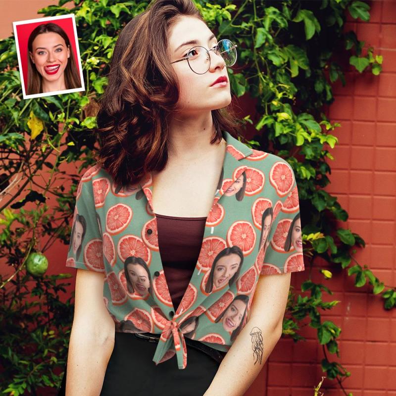 Chemise Hawaïenne Visage Personnalisé Pour Femme Chemise Hawaïenne Photo Personnalisée Pour Femme Cadeau Pour Elle - Pamplemousse Groovy