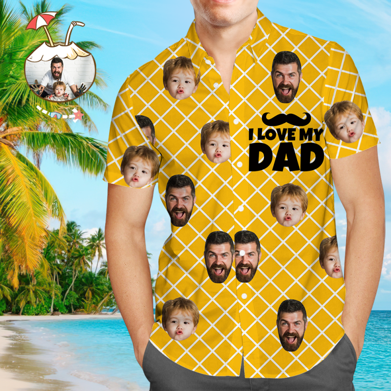 Chemise Hawaïenne À Visage Personnalisé J'Aime Mon Père Imprimé Intégral Pour Hommes