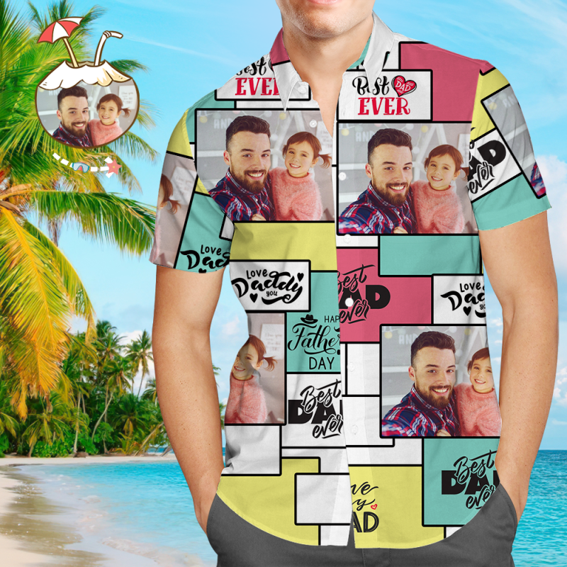 Chemise Hawaïenne À Visage Personnalisé Papa D'Amour Imprimé Intégral Pour Hommes Meilleur Amour À Papa