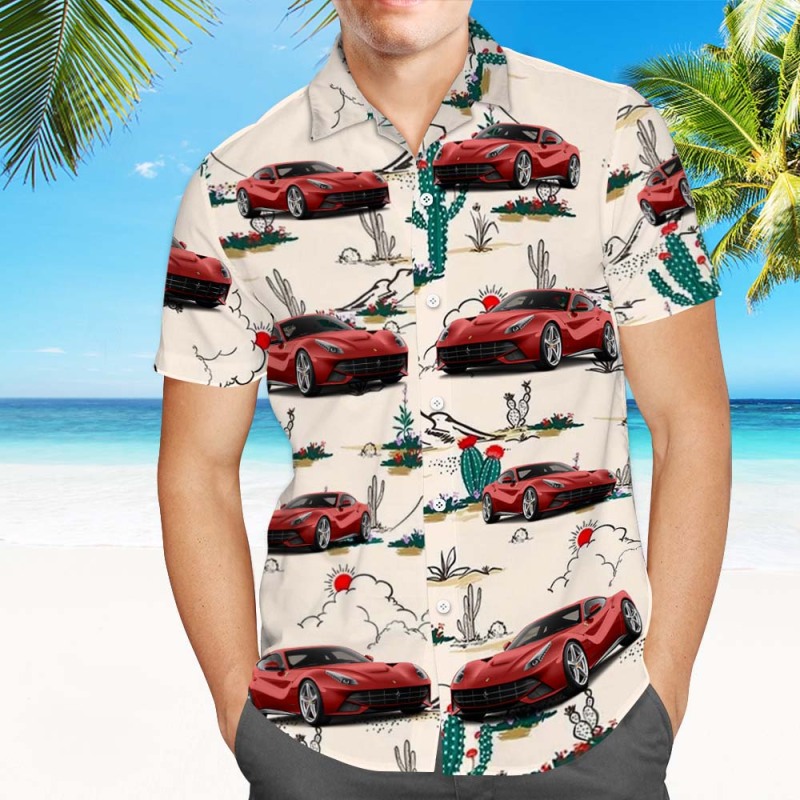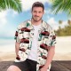 Chemise Hawaïenne Avec Visage Personnalisé, Feuilles Blanches D'été, Visage D'amant De Voiture, Chemise Hawaïenne