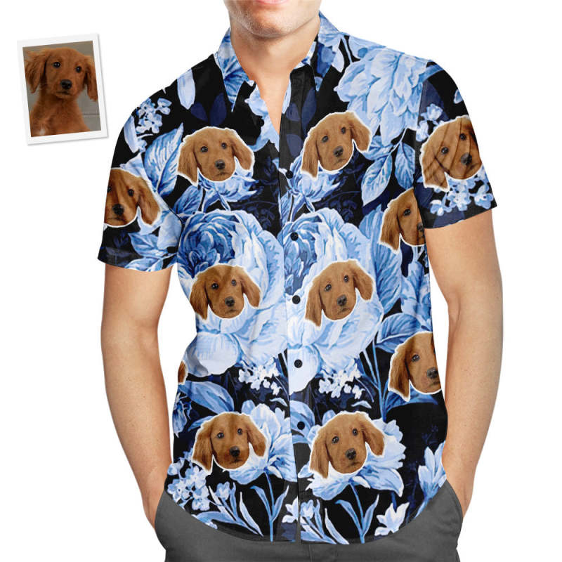 Visage Personnalisé Chemise Hawaïenne Tropical Bleu Rétro Fleur Hommes Populaire Partout Impression Hawaïenne Plage Chemise Cadeau De Vacances