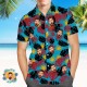 Chemises Hawaïennes Personnalisées Avec Visage, Chemise Hawaïenne De Plage À Feuilles Noires Et Rouges