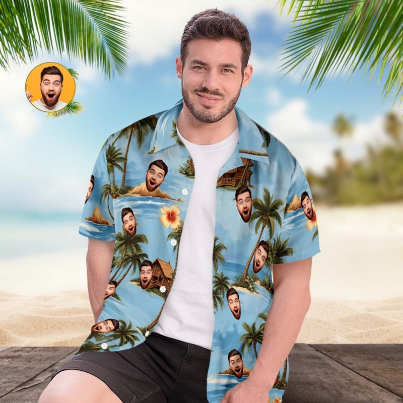 Chemises Hawaïennes Personnalisées Avec Visage De Cocotier, Chemise Avec Vibrations Et Visage De Mer