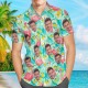 Chemise Hawaïenne À Visage Personnalisé, Chemise Sans Manches Pour Hommes, Imprimé Partout, Poche Flamant Rose