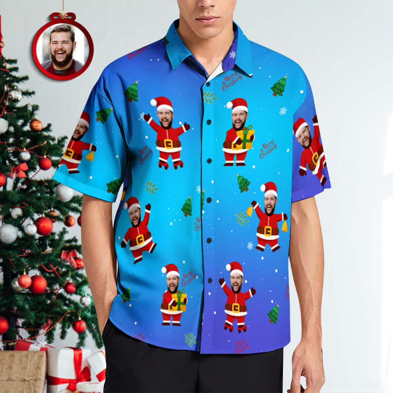 Chemises Hawaïennes De Visage Personnalisées Cadeau De Noël Personnalisé Chemise De Plage Tropicale Pour Hommes Chemises De Noël