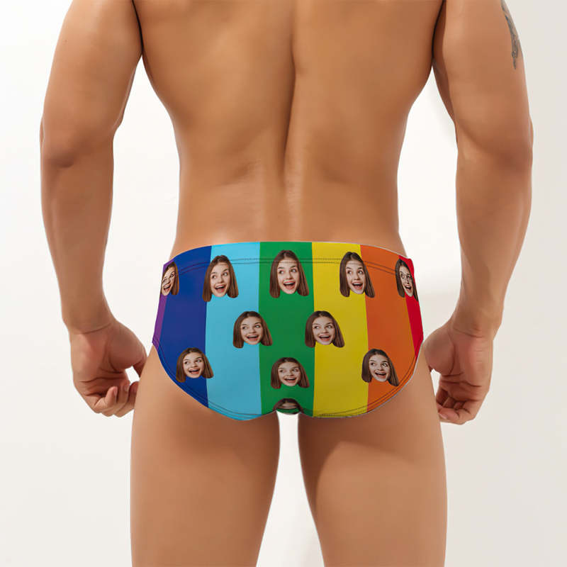Maillot De Bain Pour Hommes De Style Hawaïen Avec Visage Personnalisé Slip De Bain Triangle Arc-en-ciel