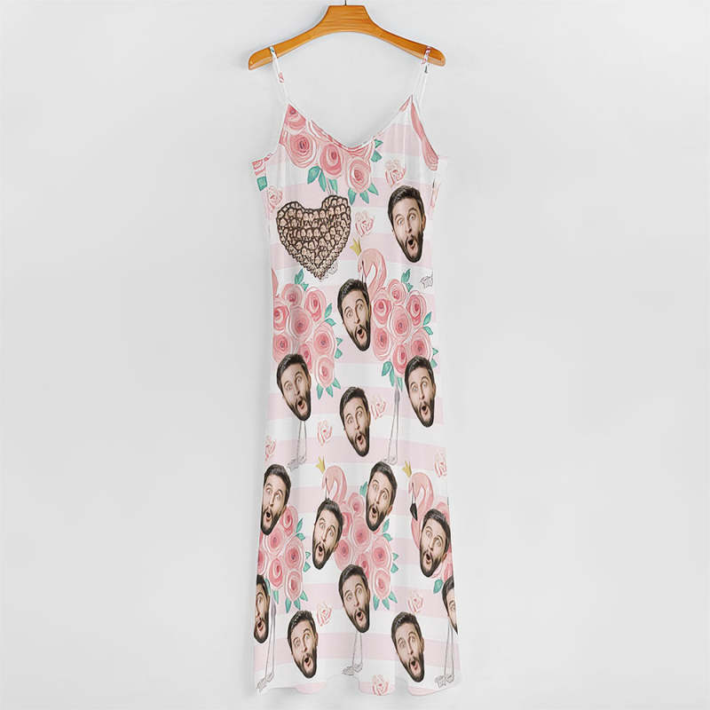 Robe Longue De Style Hawaïen De Coeur De Visage Personnalisé Robe De Fronde De Flamant Rose - Robe Longue De Style Hawaïen De Coeur De Visage Personnalisé Robe De Fronde De Flamant Rose - Robe Longue De Style Hawaïen De Coeur De Visage Personnalisé Robe De Fronde De Flamant Rose - Robe Longue De Style Hawaïen De Coeur De Visage Personnalisé Robe De Fronde De Flamant Rose -
