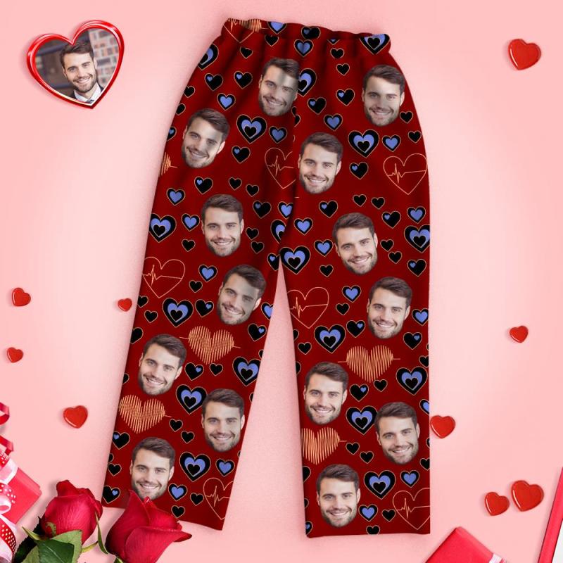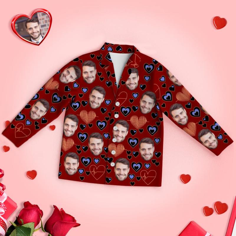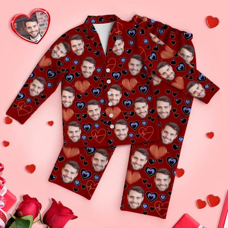 Pyjama Coeur Visage Personnalisé Pyjamas À Manches Longues Battement De Coeur Jour Du Souvenir Cadeau