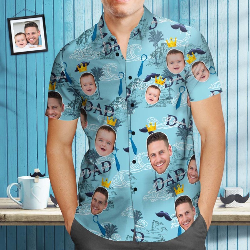 Visage Personnalisé Hommes Chemises Hawaïennes Papa Je T'aime Chemises De Fête Des Pères
