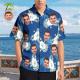 Visage Personnalisé Imprimé Intégral Pour Hommes Feuilles De Palmier Et Fleurs Chemise Hawaïenne