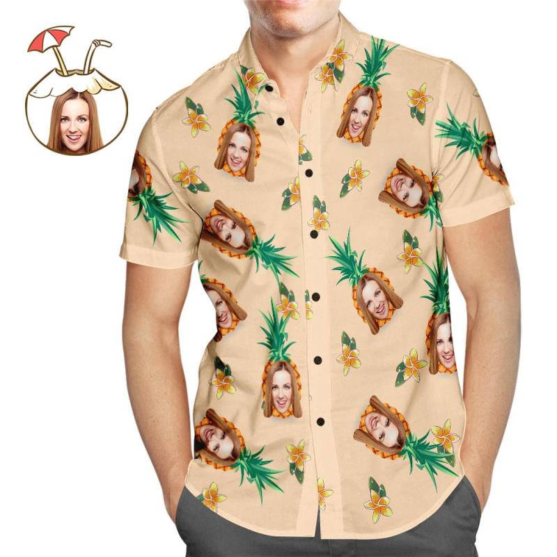 Visage Personnalisé Imprimé Intégral Pour Hommes Chemise Hawaïenne Ananas