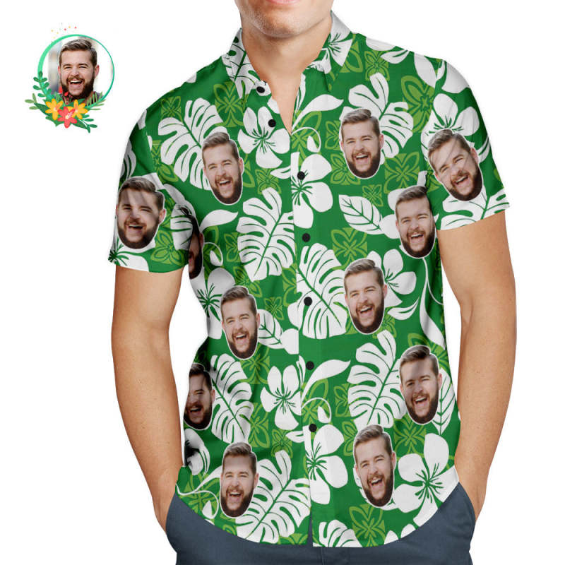 Visage Personnalisé Imprimé Feuilles De Palmier Pour Hommes Chemise Hawaïenne