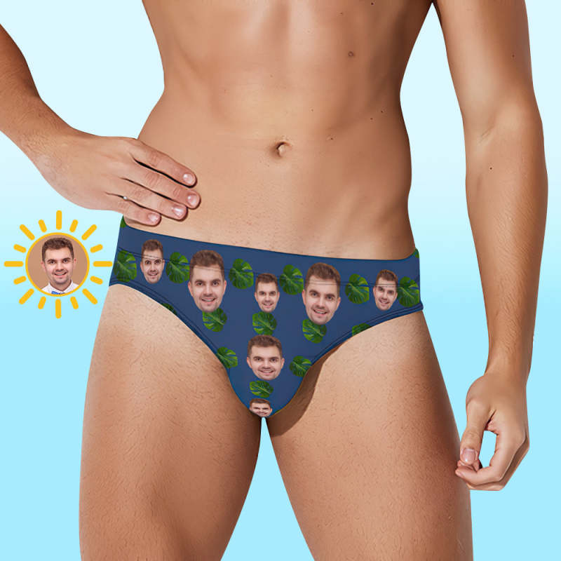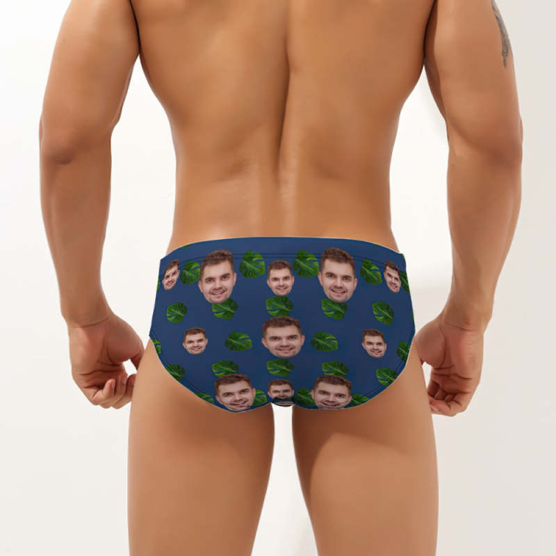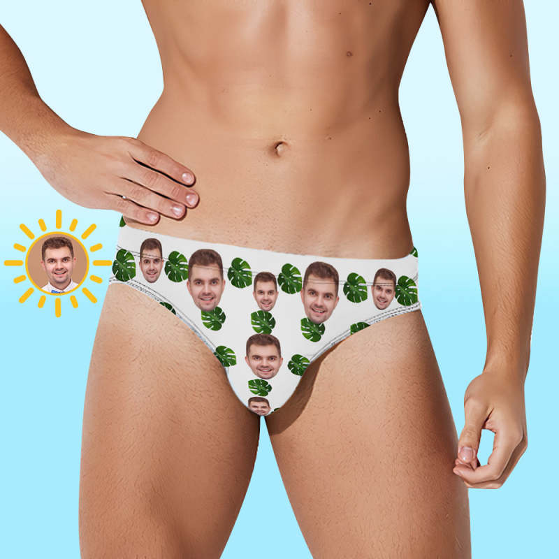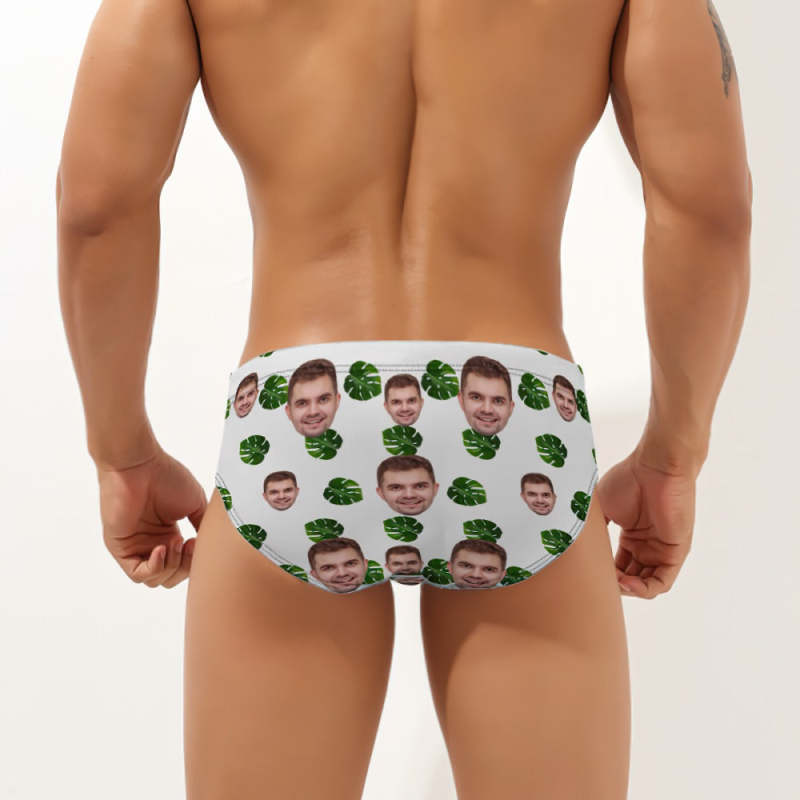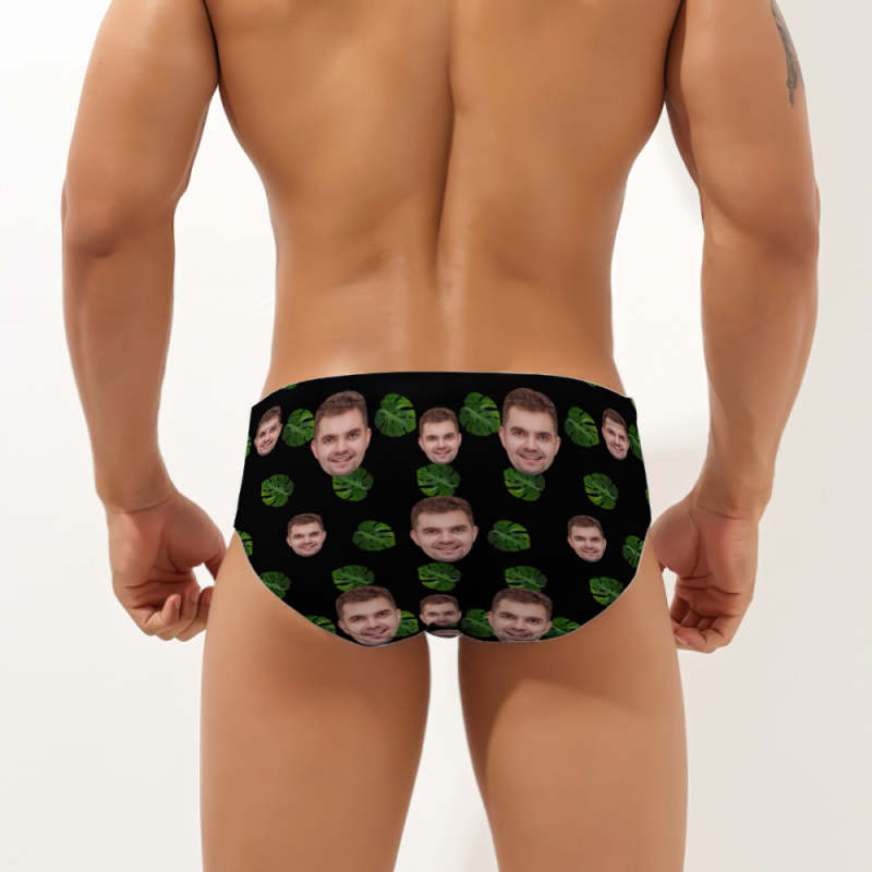 Maillot De Bain Pour Homme À Visage Personnalisé Avec Feuilles Tropicales
