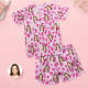 Pyjama Visage Personnalisé Femme Bleu Ensemble Pyjama Court Cadeau Coeur Rose