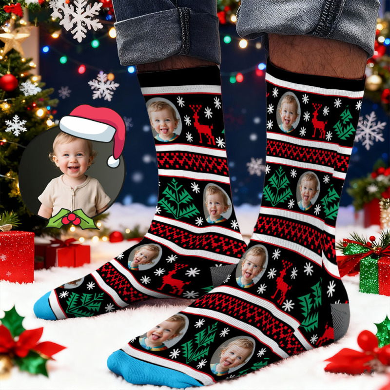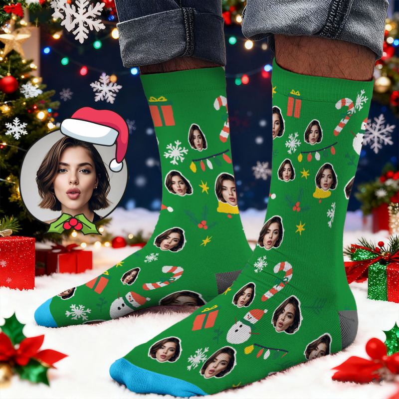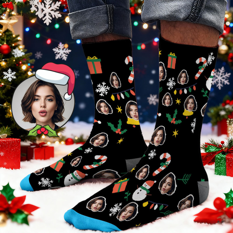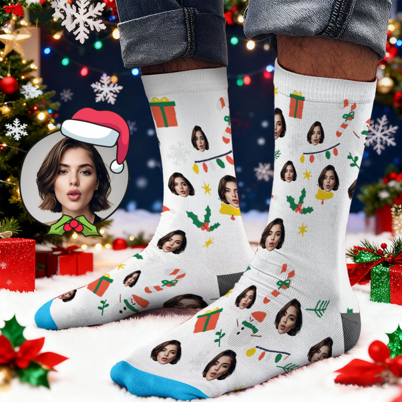 Chaussettes Personnalisées Avec Imprimé Visage, Coffret Cadeau De Noël Lumineux, Designs Personnalisés, Meilleure Idée Cadeau Pour Le Père Noël