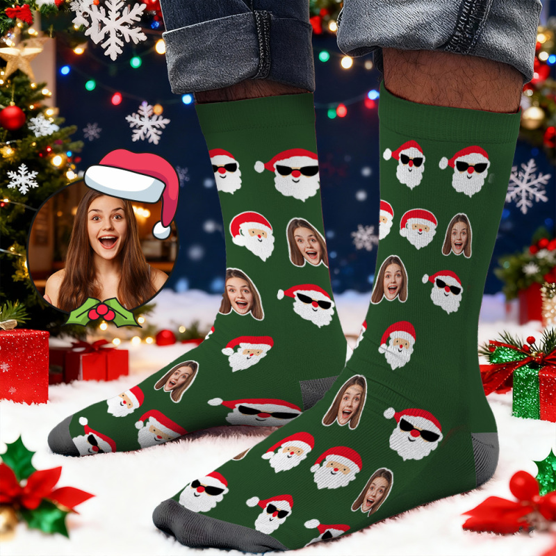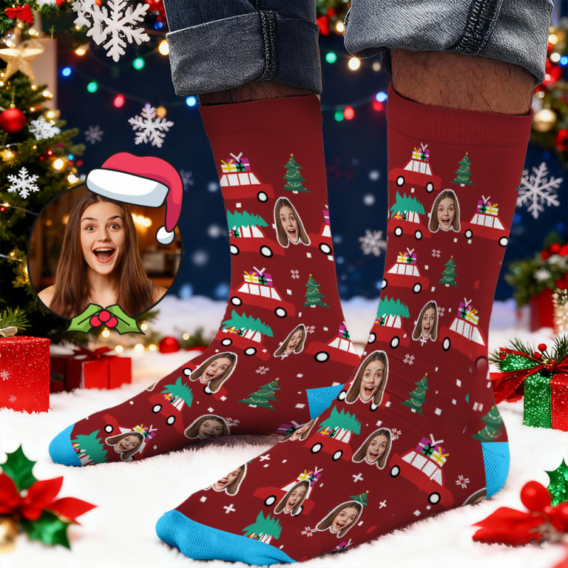 Chaussettes Personnalisées Avec Imprimé Visage, Chaussettes De Noël Avec Motif Voiture, Designs Personnalisés, Meilleure Idée Cadeau Pour Le Père Noël