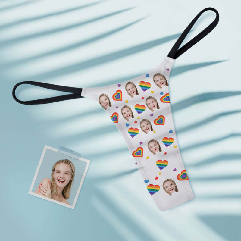 String Tanga Femme Sexy Face Personnalisé Coeurs Arc-en-ciel