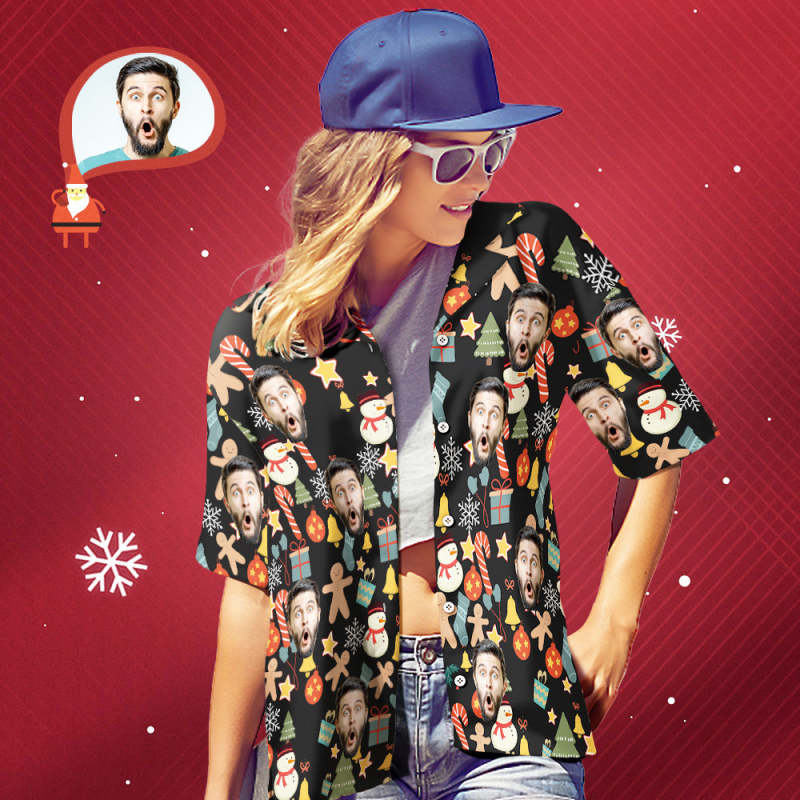 Chemise Visage Personnalisée Photo Personnalisée Chemise Hawaïenne Femme Cadeau Surprise De Noël - Joyeux Noël