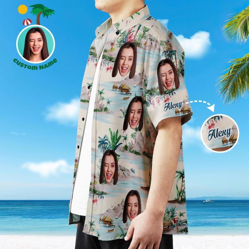 Chemise Personnalisée Avec Texte Chemise Hawaïenne Homme Vue Sur La Mer