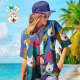 Chemise De Visage Personnalisée Chemise Hawaïenne Dog Pet Face Pour Femme Feuilles Multicolores