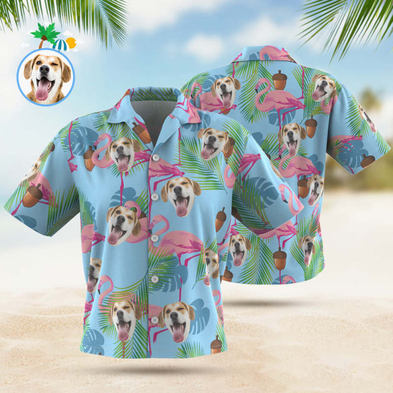 Chemise De Visage Personnalisée Chemise Hawaïenne Femme Feuilles De Flamant Rose