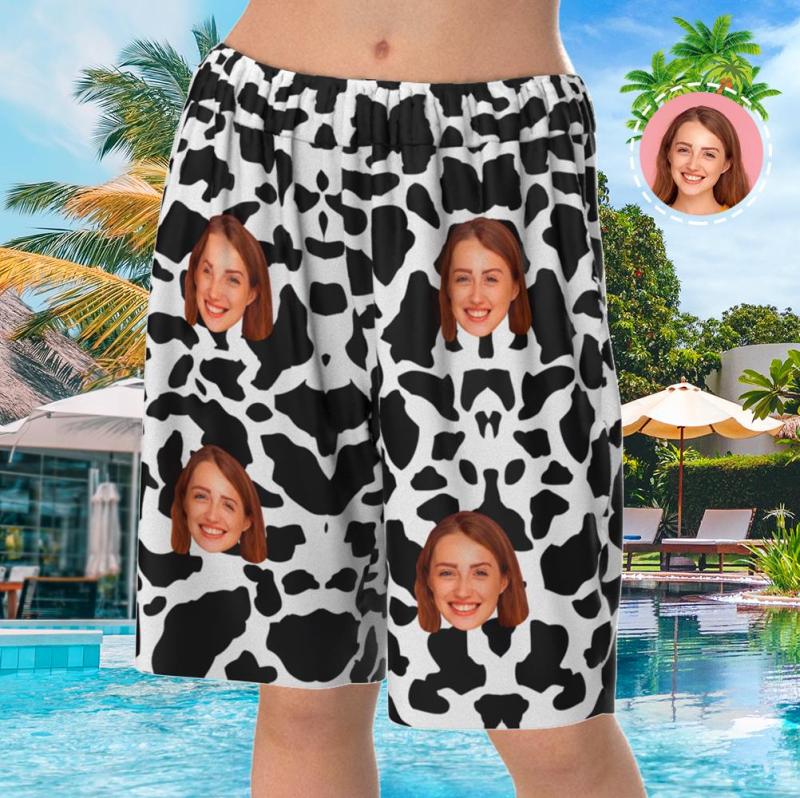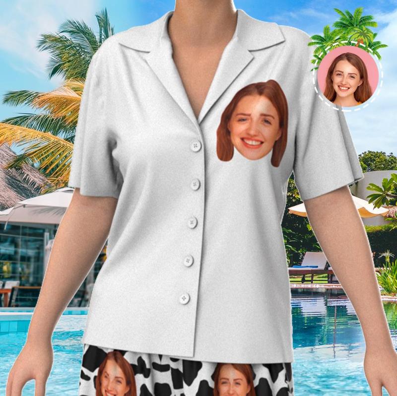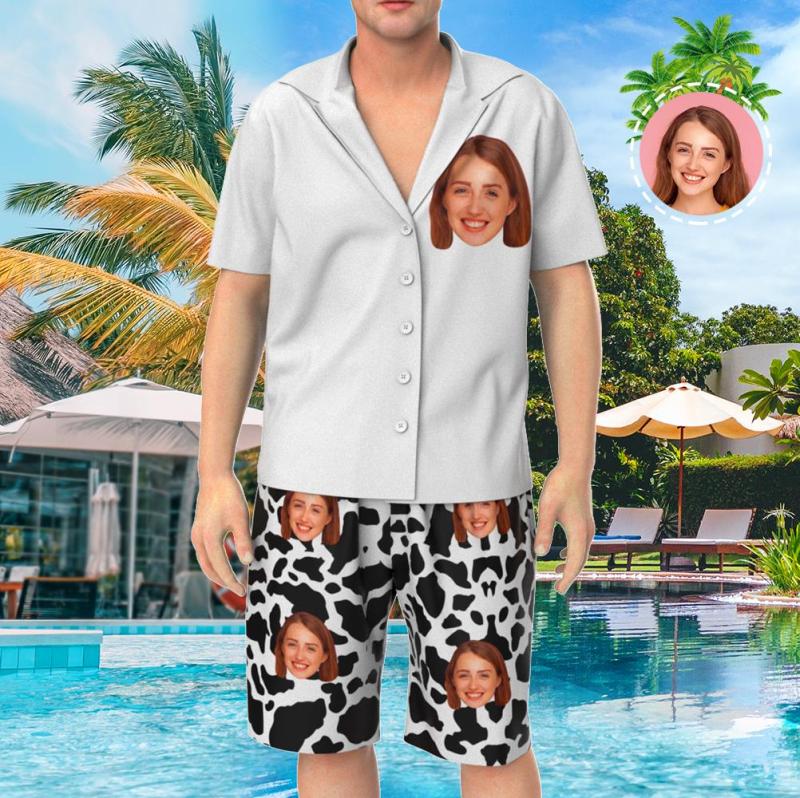 Visage Personnalisé Manche Courte Pyjama Personnalisé Motif De Vache Imprimé Dessin Animé Mignon Short Pyjama Ensemble
