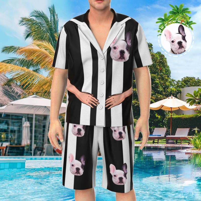 Visage Personnalisé Manche Courte Pyjama Rayé Personnalisé